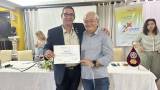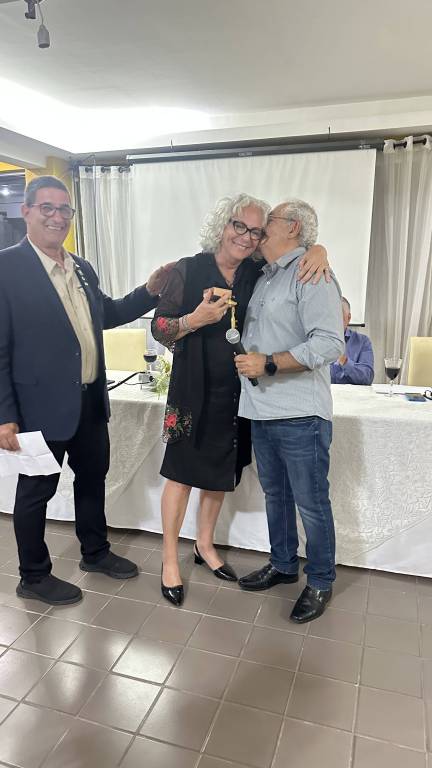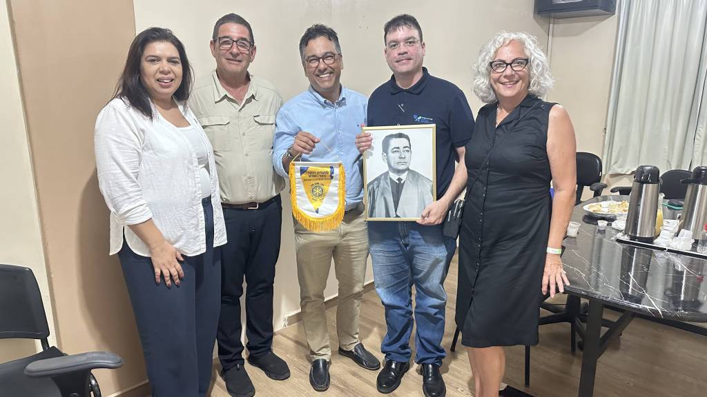 Nossa plenária semanal aconteceu, excepcionalmente, na sexta-feira para que pudéssemos ter a honra de receber nosso associado honorário Alon Bendet e sua esposa, Sari, que vieram de Israel para passar alguns dias em nossa cidade. O companheiro Alon recebeu o título na gestão 2019-20, Presidente Cromácio, porém na ocasião não foi possível realizarmos a entrega pessoalmente. Aproveitando a passagem do casal por nossa cidade, pudemos enfim fazer essa merecida homenagem.