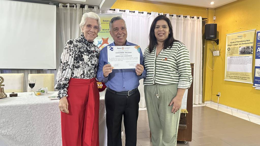 A plenária teve ainda a entrega de título de associado honorário também para Alexandre Inojosa, Governador D4500 2013-14, pela Presidente Érika, além da entrega de Título Paul Harris para Daladiana, nossa Vice-Presidente.