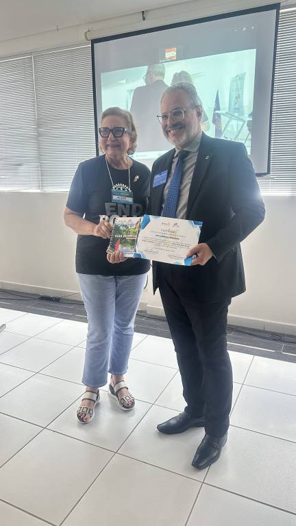 O seminário contou também com os demais integrantes da equipe distrital de imagem pública, Henrique Andrade e Maria dos Remédios, falando sobre a publicação de notícias nos sites dos clubes e na Central de Projetos do Rotary International.