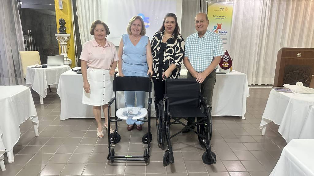 Também tivemos a alegria de receber a doação de duas cadeiras de rodas para nosso Banco Ortopédico, doadas pelo Governador D4500 2016-17 João Dantas, nosso associado honorário, pela celebração dos 25 anos do clube.