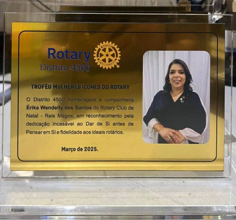 Por fim, tivemos a entrega do Troféu Mulheres Ícones do Rotary, uma homenagem da Comissão a mulheres rotarianas de nosso Distrito que tiveram atuação de destaque durante a gestão. Dentre as homenageadas figurou nossa atual Presidente Érika Wendelly, a quem parabenizamos e expressamos nosso orgulho em tê-la como liderança atuante e motivadora.
