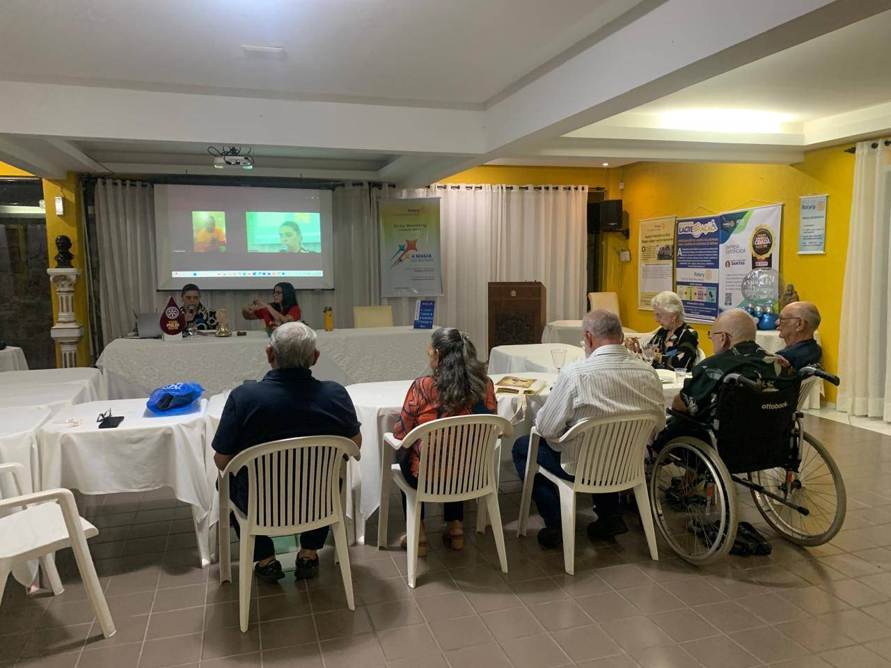 Essa semana fizemos nossa uma reunião híbrida, com presença de associados em nossa sede mas também transmitida via Zoom Meeting para outros dois companheiros. Estamos tentando adequar nossa estrutura para possibilitar esse formato de reunião, permitindo a presença de associados de qualquer lugar. Tivemos uma reunião produtiva, com ótimas notícias sobre nossos projetos. Aproveitamos para agradecer a doação de lacres de alumínio enviada pelo Rotary Club de Carpina. Como é bom ter amigos em Rotary!
