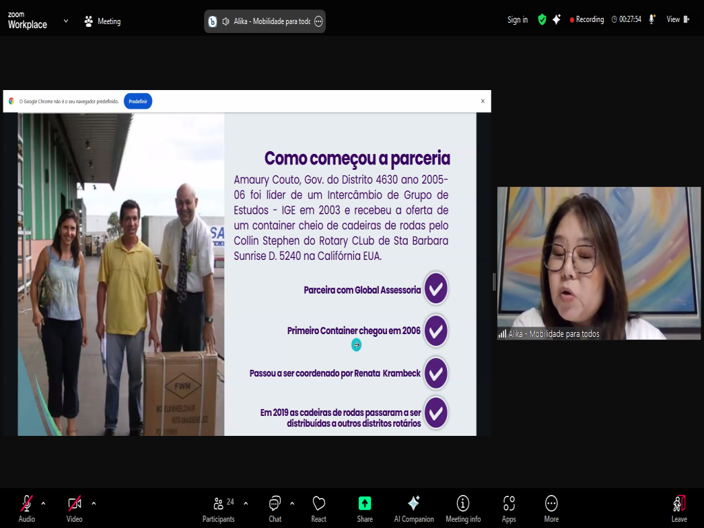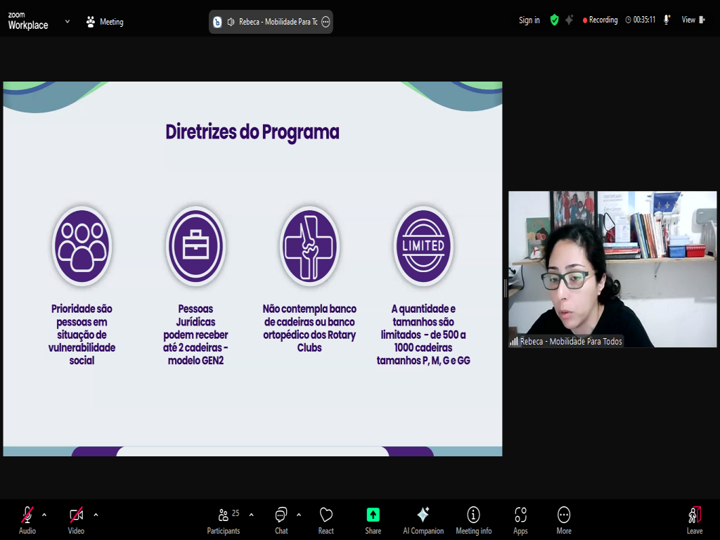 Recentemente, o Distrito 4500 foi habilitado para participar do projeto, através do treinamento de alguns integrantes, dentre os quais, nossa Presidente Érika Wendelly. Essa reunião teve o objetivo de apresentar para os demais rotarianos do Distrito como o projeto vai funcionar e como cada membro poderá colaborar para que possamos realizar os cadastros de solicitação das cadeiras e realizar as entregas.
