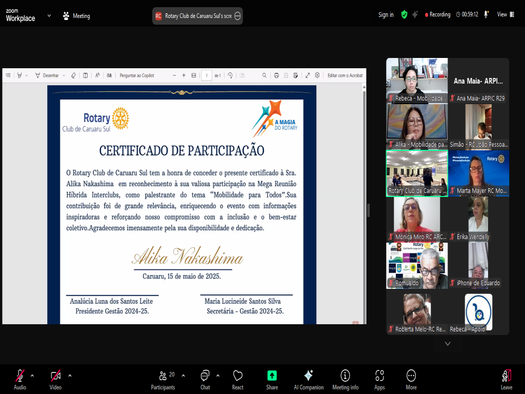 Na quinta-feira 15/05, participamos de uma importante reunião, capitaneada pelo Rotary Club de Caruaru-Sul, mas com a participação de diversos clubes do Distrito 4500, com o objetivo de disseminar conhecimento sobre o PROJETO MOBILIDADE PARA TODOS.