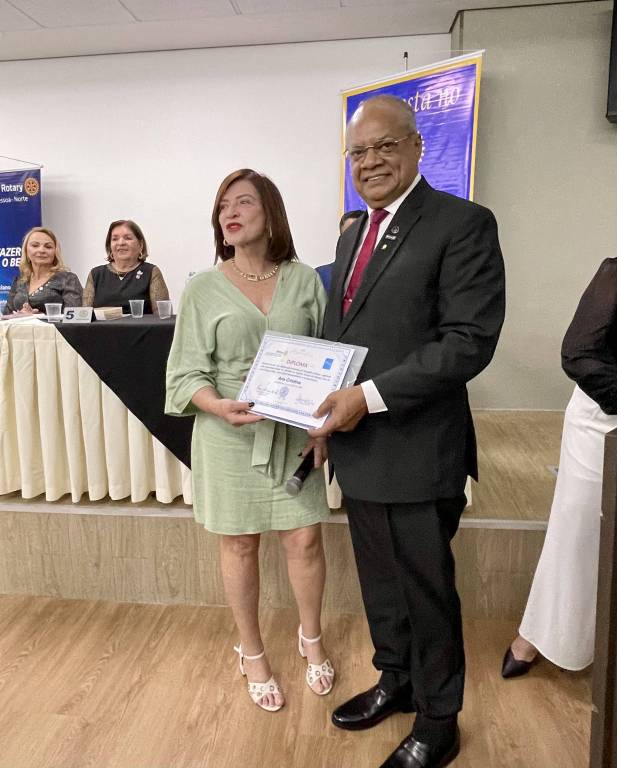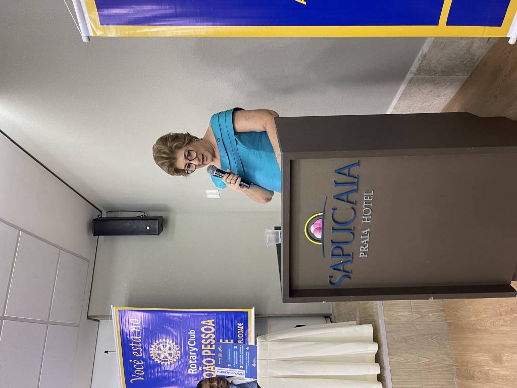 A presidente Francisca Brito, ano rotário 2024-25, destacou em seu discurso que em sua gestão contou com todo o clube para o cumprimento das metas do ano rotário e agradeceu o apoio recebido dos companheiros.