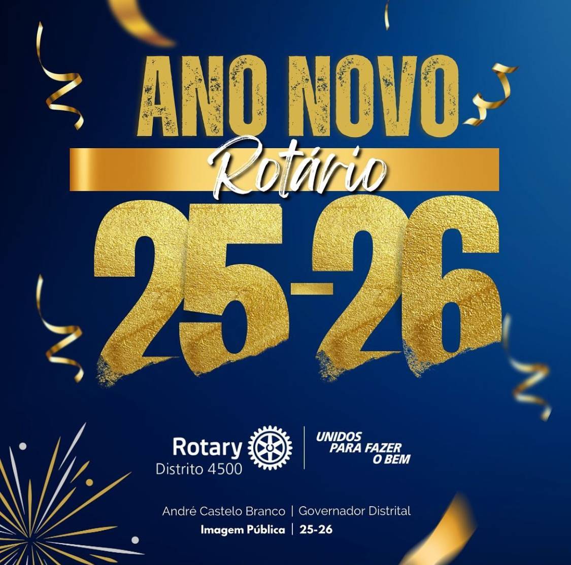A partir de hoje, 1º de julho, damos início a um novo capítulo em nossa história rotária, com projetos inspiradores, trabalho voluntário dedicado e muito colaborativo. É hora de acender a chama do servir com entusiasmo, guiados pela visão do nosso governador e movidos pelo lema que nos conduz.