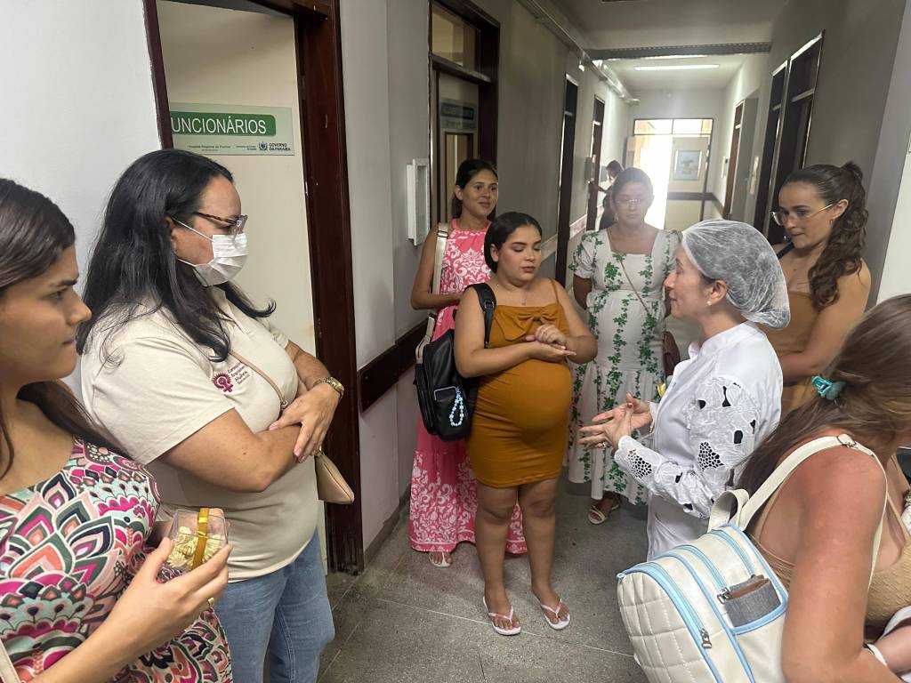 As gestantes foram apresentadas ao espaço onde irão parir. Da triagem na Rede Cuidar, passando pela sala de Pré-parto, sala de Parto humanizado, berçário, sala de cirurgia e UTI, todos ambientes interligados, reduzindo o tempo entre as intercorrências. E por fim, o alojamento onde as mamães e seus bebês ficarão.