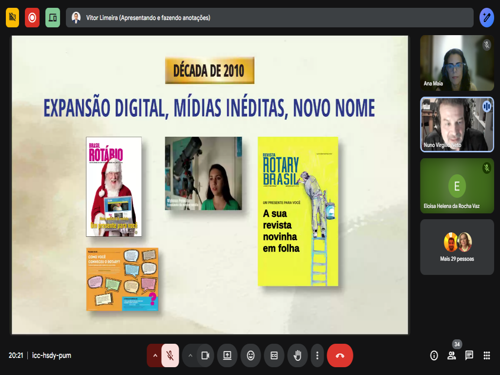 Por ocasião do centenário do Rotary no Brasil, celebrado em 2023, Nuno fez uma pesquisa no acervo da Revista Rotary Brasil e percebeu a evolução da comunicação do Rotary International aqui no país ao longo do tempo.