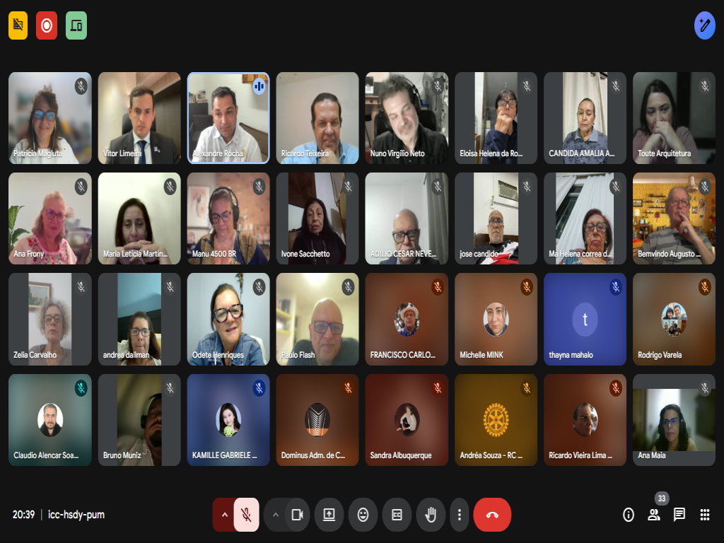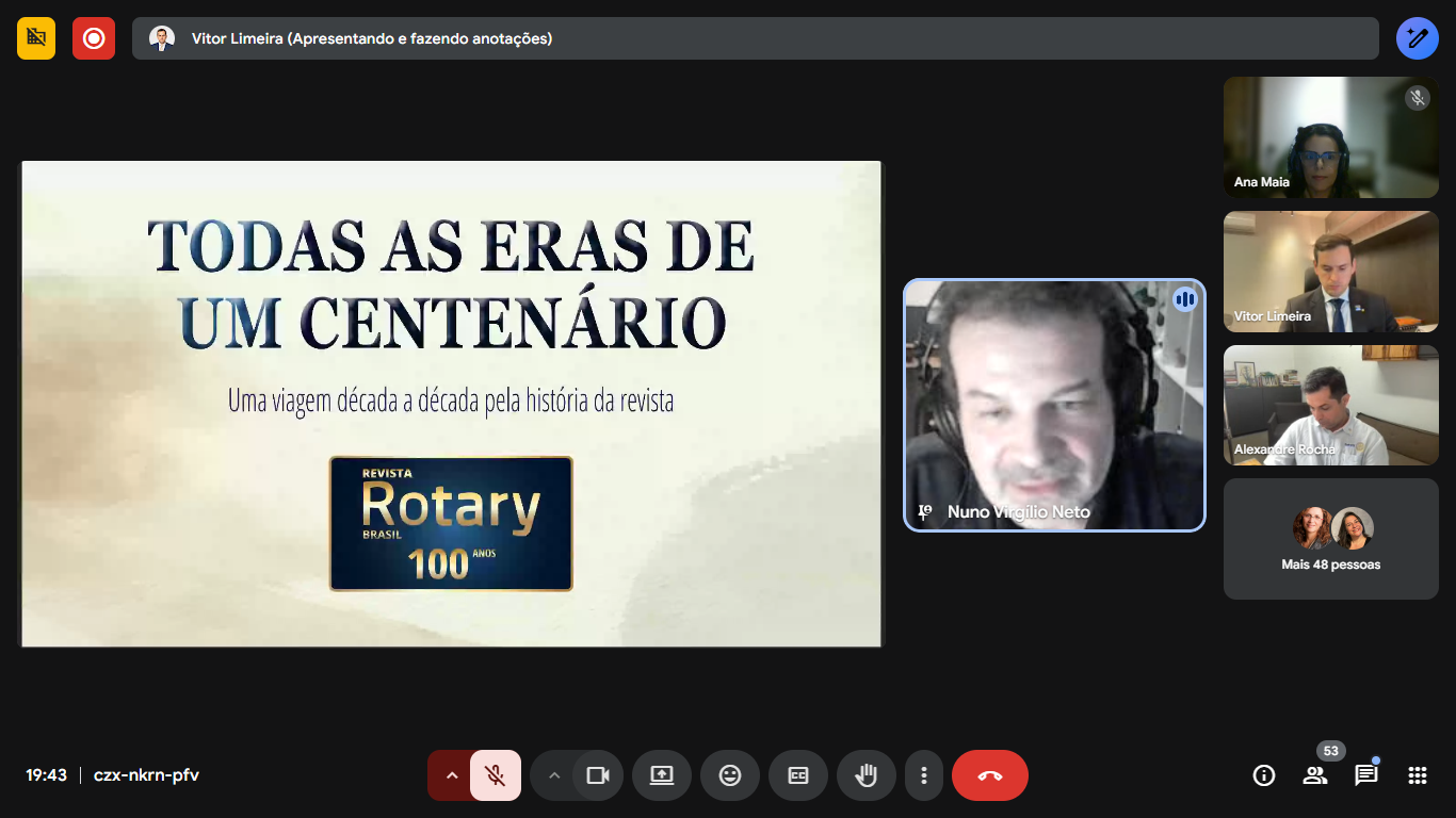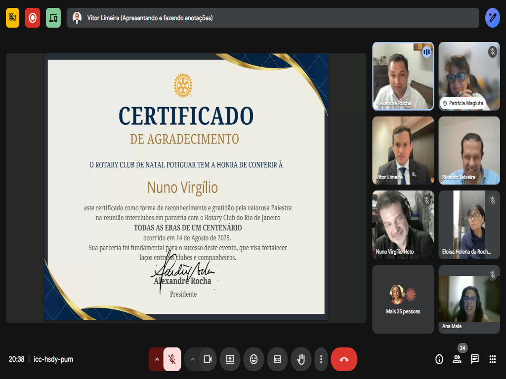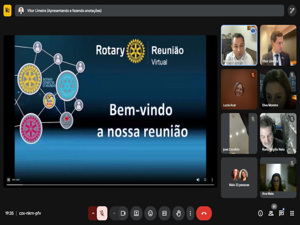 Na noite de hoje participamos de uma reunião interclubes ON LINE capitaneada pelo Rotary Club de Natal-Potiguar juntamente com diversos distritos e clubes do país.