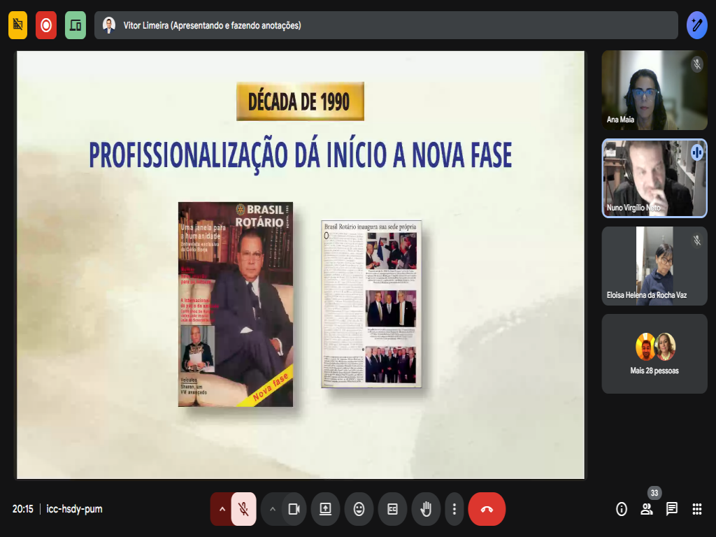 Através de capas, manchetes e destaques, Nuno apresentou as diversas mudanças pelas quais passou a instituição ao longo dos anos. Uma verdadeira aula de história e, ao mesmo tempo, um fantástico registro do crescimento do Rotary no Brasil.