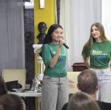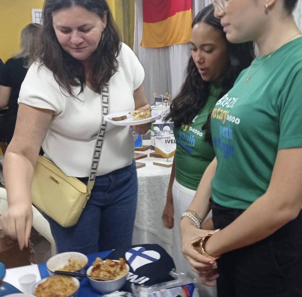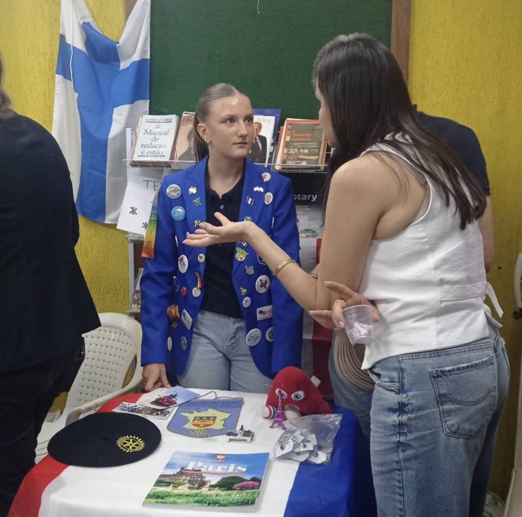 A equipe empolgou o público presente à reunião de divulgação do Programa de Intercâmbio de Jovens do Rotary, falando de suas expectativas e experiências no intercâmbio. Houve uma mini Feira das Nações, com comidas típicas e curiosidades de cada país.