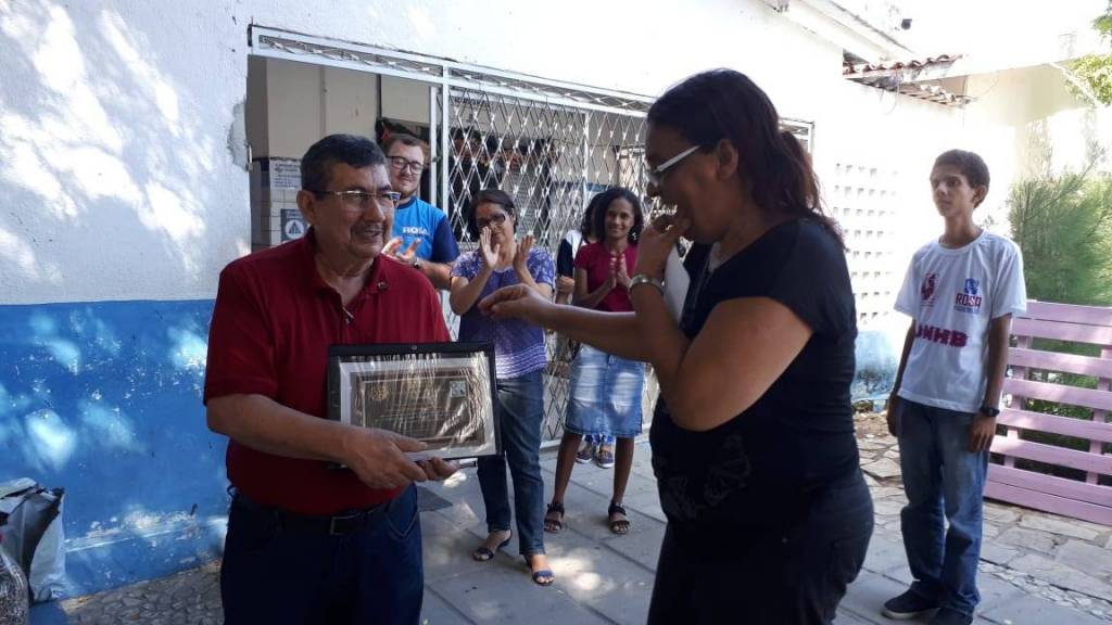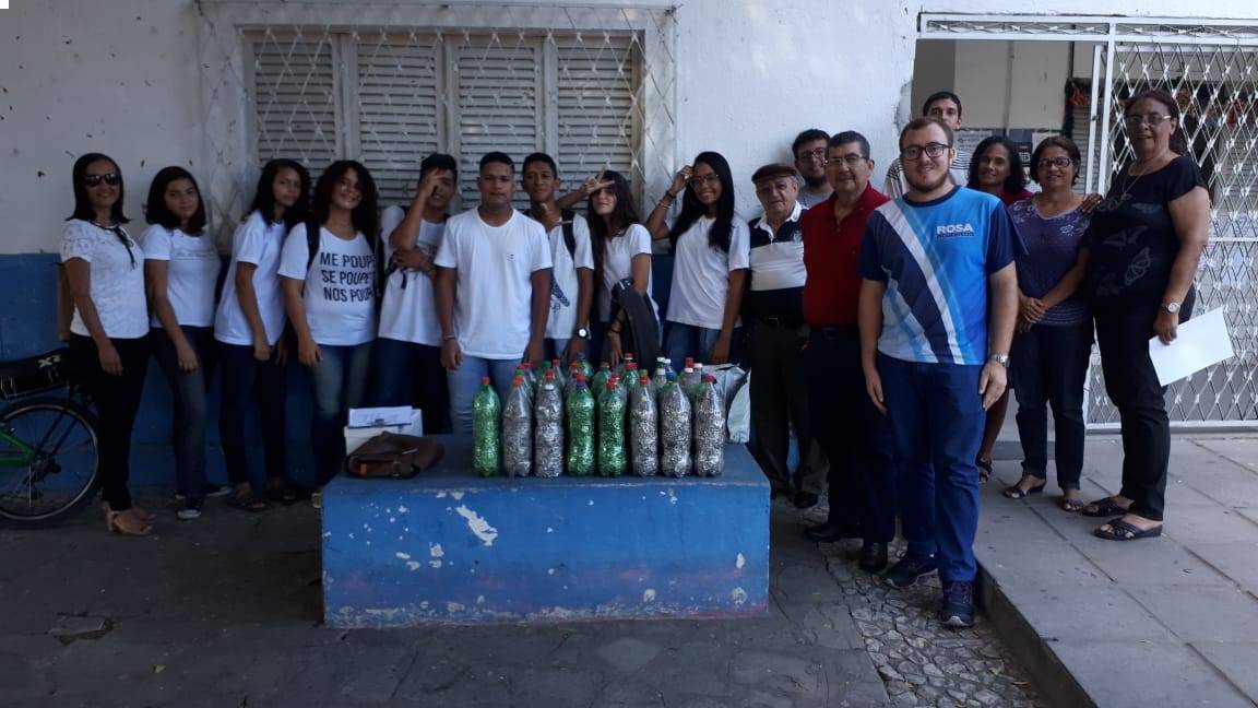 RC João Pessoa Tambaú e Campanha do Lacre do Bem recolhem 40 garrafas de lacres e tampinhas na escola Rosa Figueiredo em Cabedelo-PB