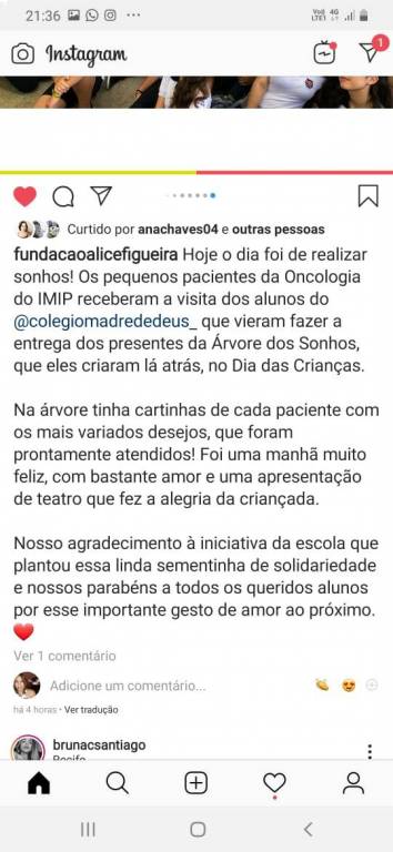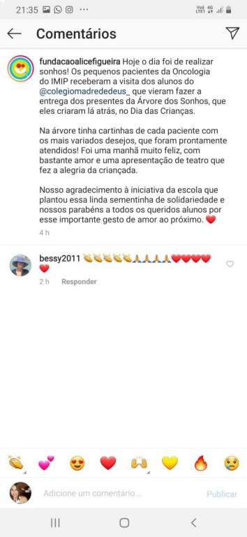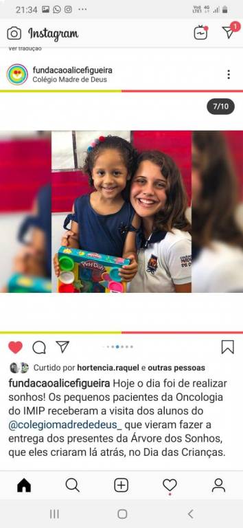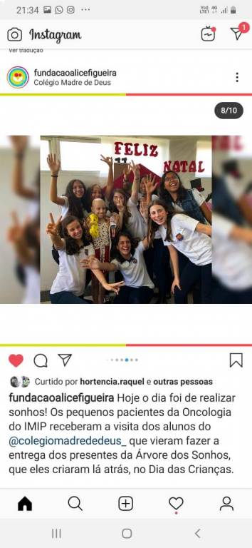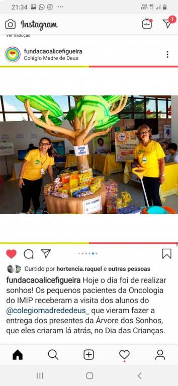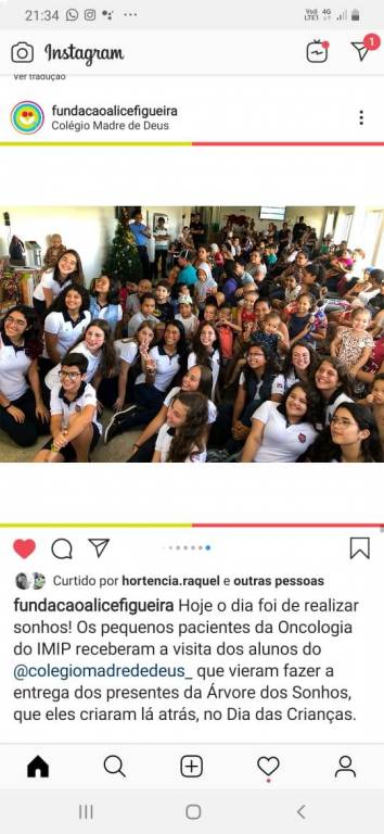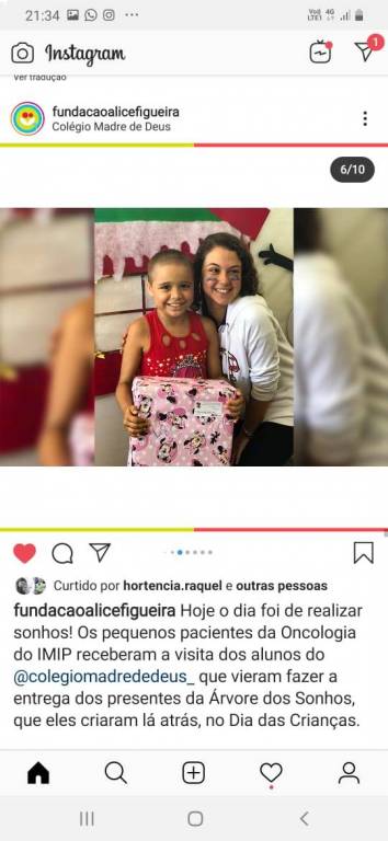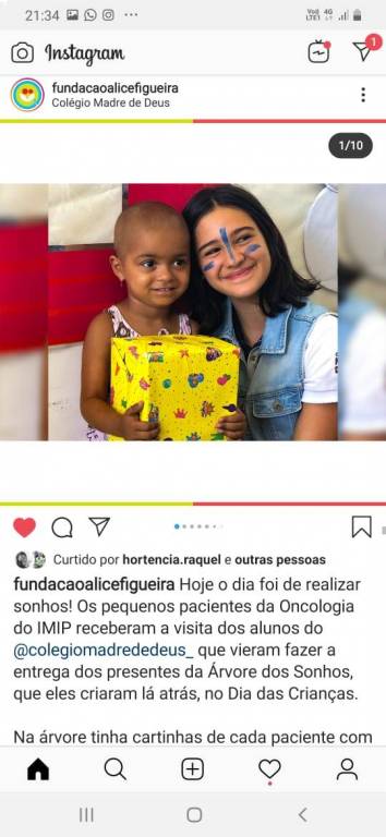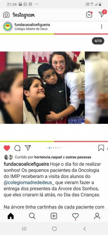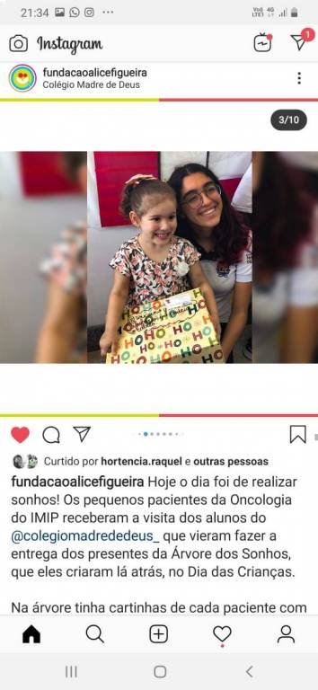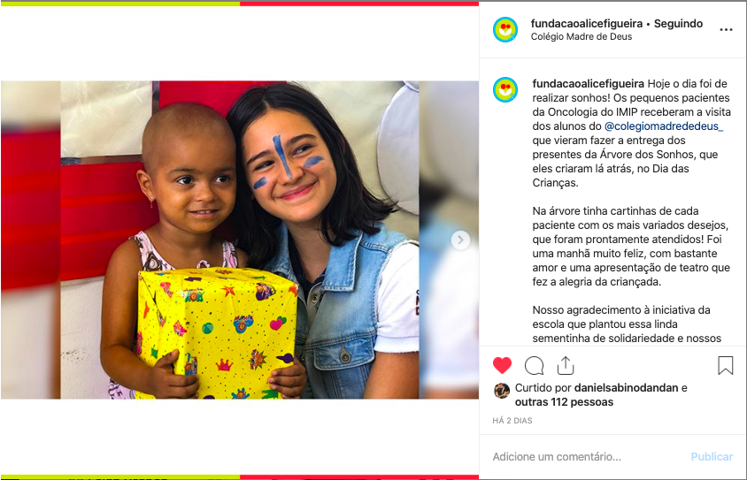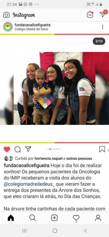 Os pequenos pacientes da Oncologia do IMIP receberam a visita dos alunos do @colegiomadrededeus_ que vieram fazer a entrega dos presentes da Árvore dos Sonhos, que eles criaram lá atrás, no Dia das Crianças. No grupo, as jovens companheiras do Interact Encanta Moça Luiza Saorin, Victoria Vieira, Analu Siqueira e Julia foram representando o Interact.