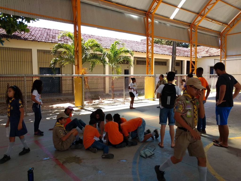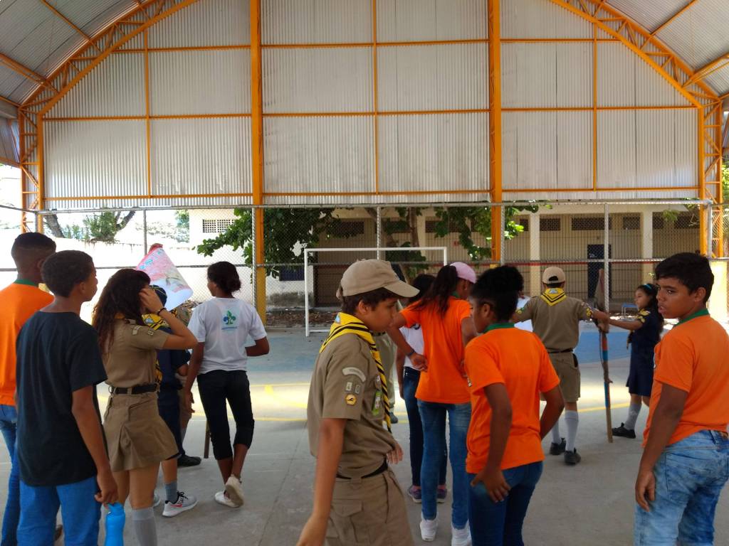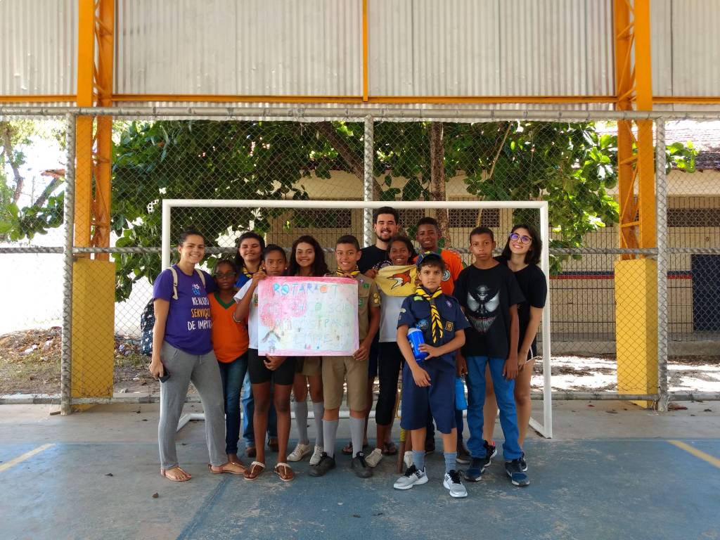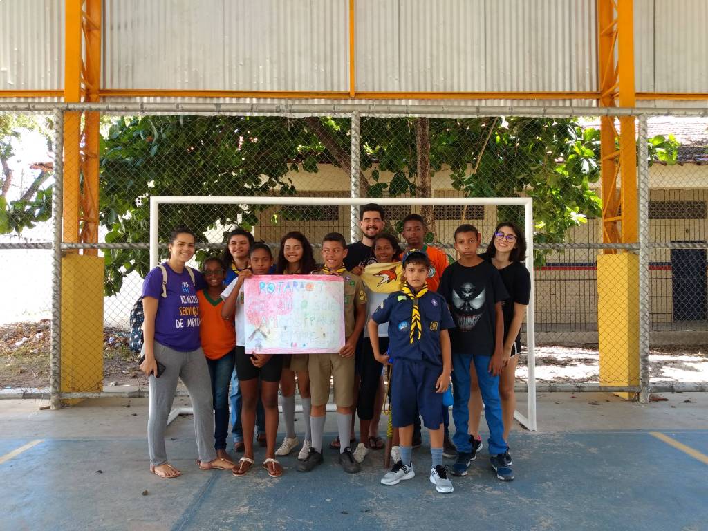 Na ação participam jovens do grupo de escotismo Chico Science. Dentr eles estão 08 joves da comunidade visinha do Encanta Moça, que são apadrinhadas pelo Rotary Club para participaremdas atividades de escotismo.