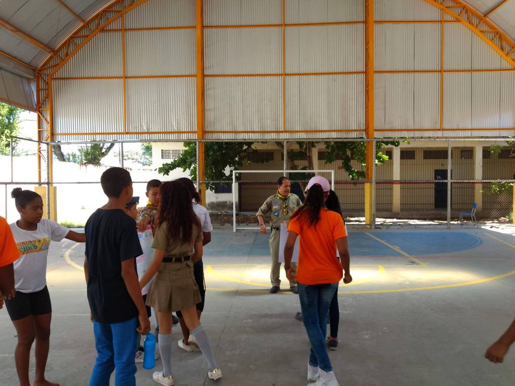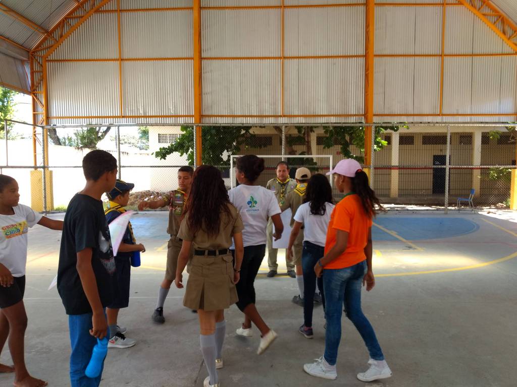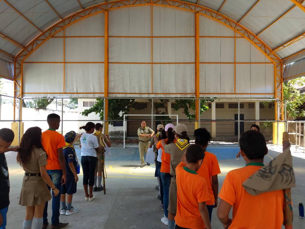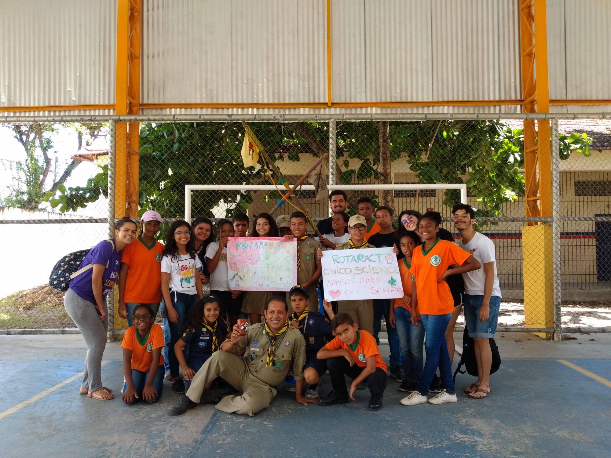 Na ação participam jovens do grupo de escotismo Chico Science. Dentr eles estão 08 joves da comunidade visinha do Encanta Moça, que são apadrinhadas pelo Rotary Club para participaremdas atividades de escotismo.